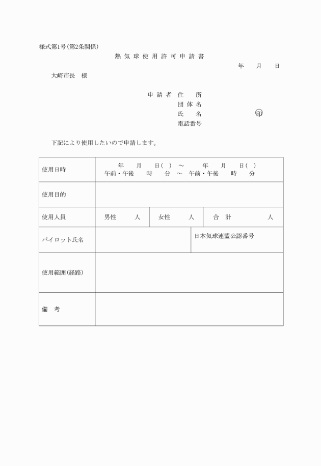 ○大崎市熱気球使用規程