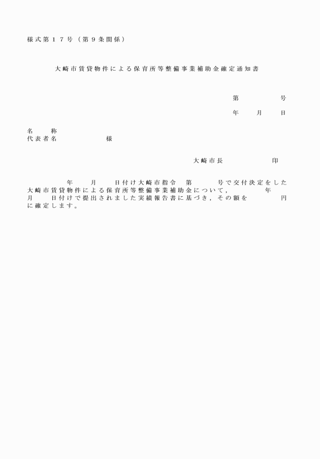 ○大崎市賃貸物件による保育所等整備事業補助金交付要綱