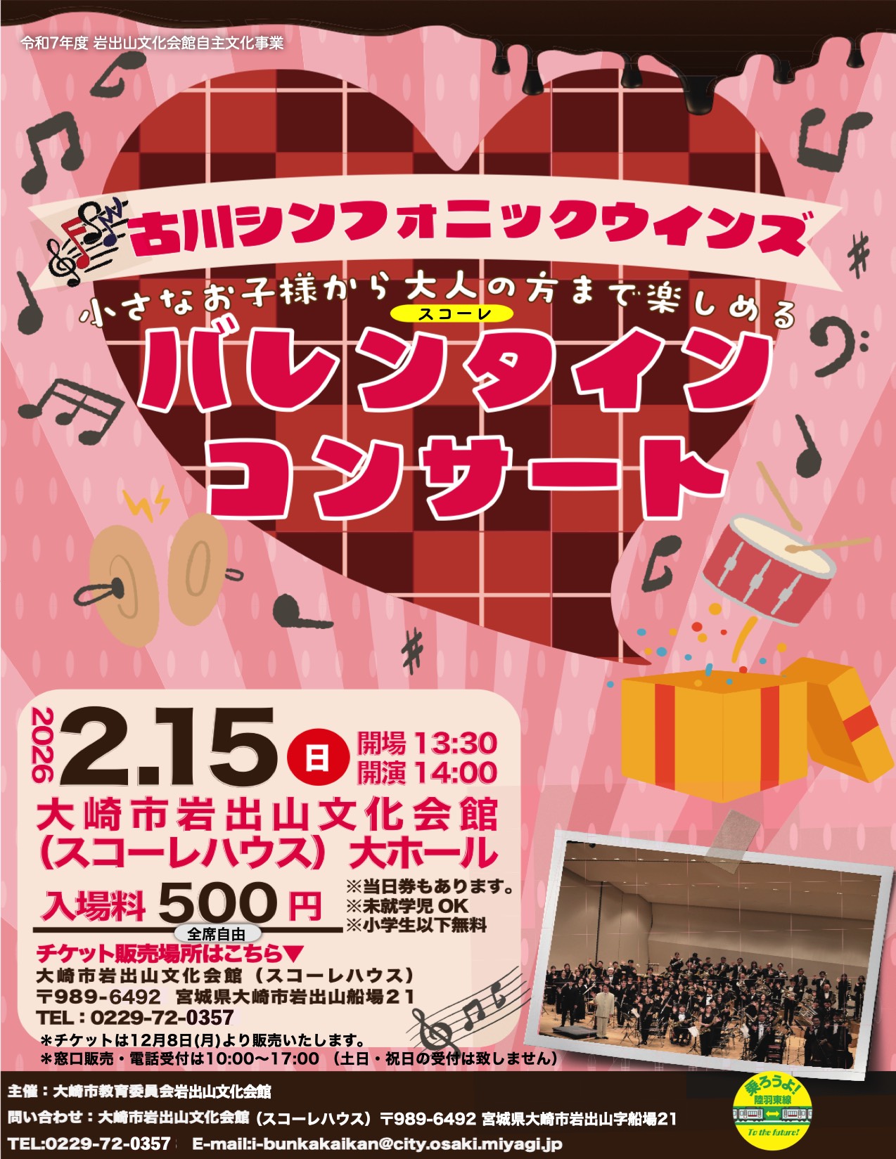 古川シンフォニックウインズによる迫力ある演奏で、バレンタインを楽しみませんか。