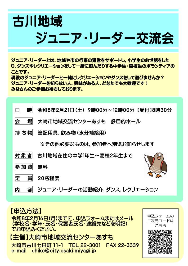 古川地域ジュニア・リーダー交流会を開催します